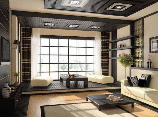 Японский стиль. Ассоциируется со строгостью, скромностью и минимализмом. При помощи деревянных панелей можно сделать яркий акцент на потолке или стенах, если использовать материал темных оттенков.