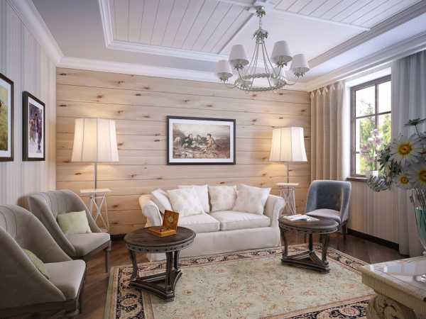 Деревенские стили. Кантри, прованс, шале и русский стили широко используют деревянные материалы, и вагонка (особенно состаренная) будет как нельзя кстати. Вы можете не ограничивать себя палитрой натуральных оттенков. В гостиной, оформленной в стиле прованс, стены могут иметь мягкие бежевые, оливковые и лавандовые оттенки, что идеально сочетается с оштукатуренными поверхностями и полом натурального дерева.