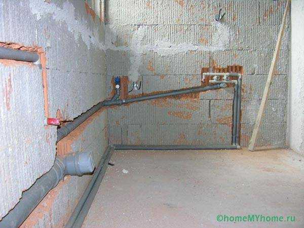 - Монтаж трубопровода в помещениях дома с выводом в единый сток.
