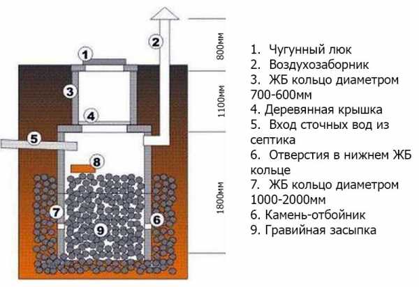 Эта схема устройства индивидуальной канализации в частном доме получила широкую популярность благодаря невысокой стоимости.
