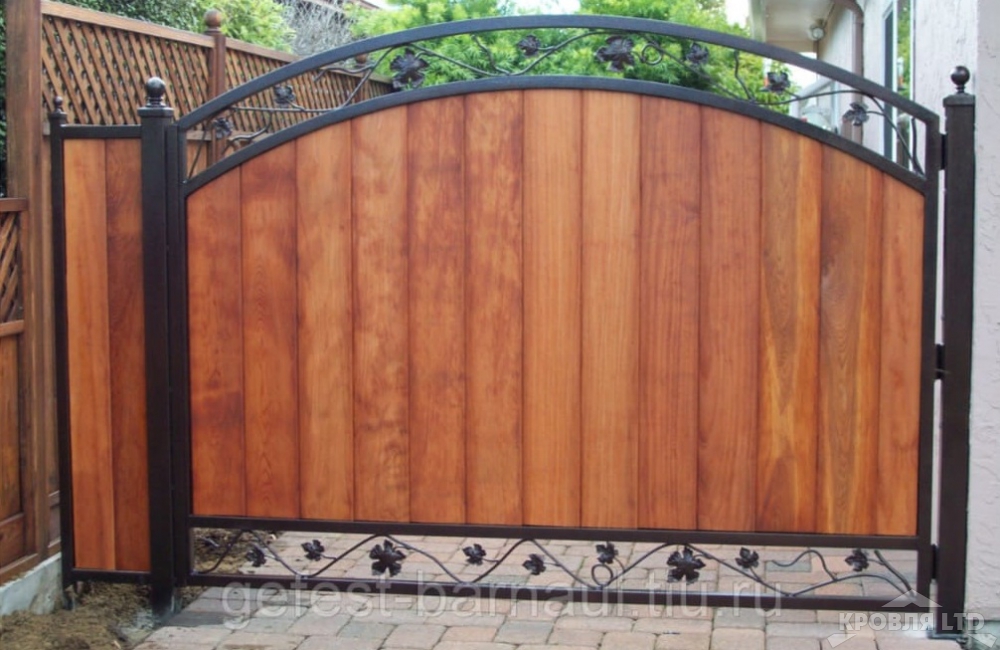Створки распашных ворот чаще всего представляют собой металлические рамы, сваренные из уголка или профильной трубы, которые затем могут обшиваться разными материалами — тонкими металлическими листами, профнастилом или древесиной.