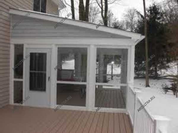 - Закрытое — служит для оформления входа в дом, для стен используют прозрачное или полупрозрачное стекло, поликарбонат или москитную сетку. Таким помещением удобно пользоваться в качестве предварительной прихожей, отдыхать в нем в любое время года.