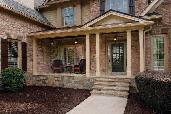 Крыльцо — массивное сооружение, строение показывает, что дом — опора и защита своих хозяев. Декором для него часто служит природный камень.
