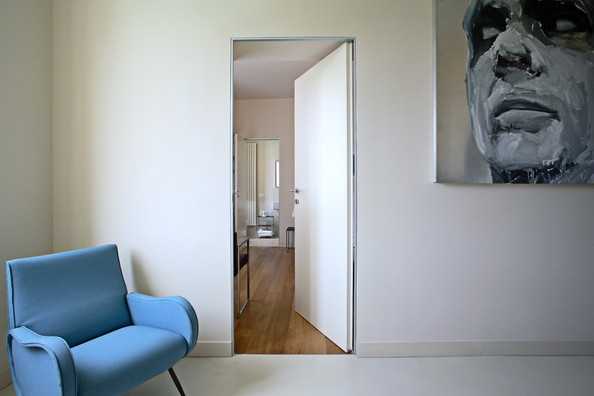 Рис. 6. Особенностью конструкций маятникового типа является возможность створок распахиваться в обе стороны. Во избежание травматизма, рекомендуется изготавливать их из прозрачных или полупрозрачных типов стекла.