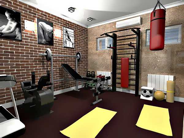 Вариант дизайна тренажерного зала в цоколе