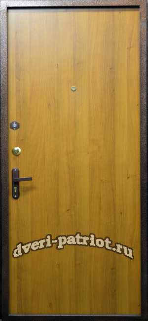 Еще больше снизить цену позволяет отказ от применения дорогостоящих материалов. В таких дверях чаще всего применяется порошковое напыление снаружи и дешевый ламинат внутри, однако даже такая дверь может выглядеть достаточно хорошо.