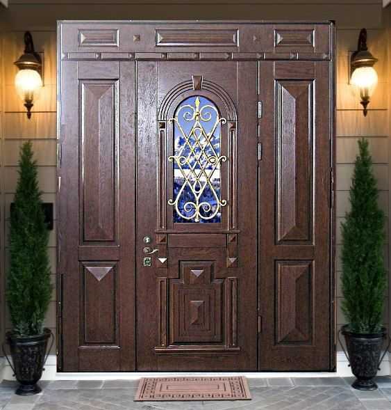При изготовлении таких дверей максимально используются материалы природного происхождения, элементы дорогой отделки, дополнительные бронированные накладки. Они доступны людям с доходом значительно выше среднего. Подобные железные входные двери выглядят превосходно как и на фото, так и в жизни.