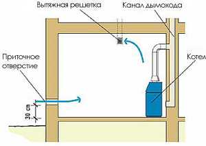 Воздухообмен в помещении с отопительным оборудованием