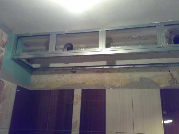 - Стационарный короб из профилей, обшитых гипсокартоном.
