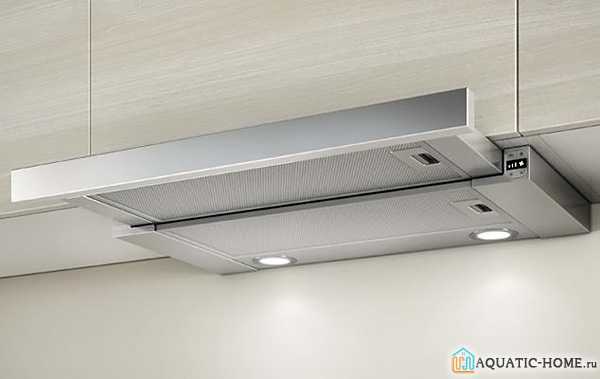 - Встраиваемые. Приборы этого вида являются идеальным решением для малогабаритных квартир. Их особенность заключается в том, что они встраиваются в шкафчик и выступают в качестве его дна. Некоторые устройства могут раздвигаться, что позволяет увеличить объем захватываемого воздуха.