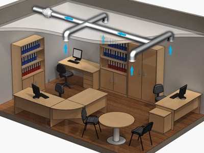 Принудительная система очистки воздуха оснащена вентиляторами, насосами, кондиционерами и двумя воздуховодами. Один – приточный, второй – вытяжной.