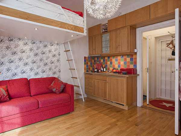 Бюджетным вариантом второго этажа станет покупка кровати чердака. Она устанавливается в гостиной над диваном и используется в качестве отдельного спального места.