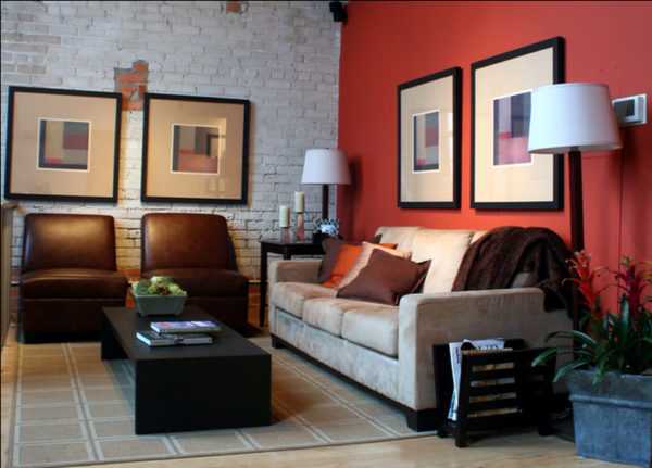 Можно расположить мебель, как у входа в гостиную, так и у выхода. Чтобы добавить интерьеру стиль и яркость, можно декорировать пространство маленькими элементами насыщенных цветов (картины, статуэтки, вазы с цветами).