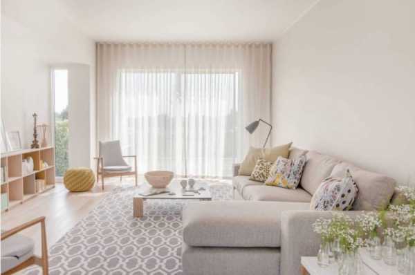 - Монотонный дизайн в светлых тонах, бежевом, молочном сделают визуально маленькое помещение более просторным, воздушным и легким. Такая идея подходит людям, которым гостиная необходима для отдыха и расслабления.