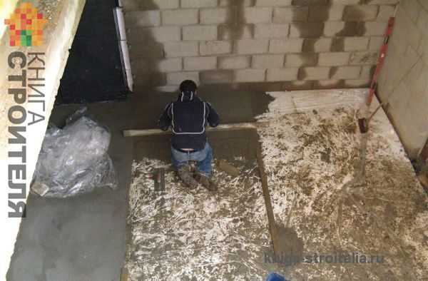 как залить, выставить маяки, черновая стяжка, гидроизоляция,