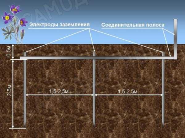 • три горизонтальных металлических полосы, соединяющие заземлители с вертикальным расположением;