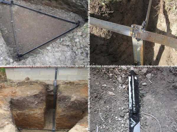 5. Вбить в вершины треугольной траншеи уголки. В глубину металлические заземлители должны войти на полтора метра.