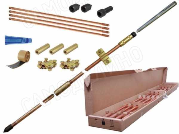 Рассматриваемая система защиты хороша тем, что не требует сварочных работ и занимает минимальную площадь. Покрытые медью стержни имеют очень хороший контакт с землей. В этом случае в небольшой ямке можно установить всего один достаточно длинный заземлитель (до 40м).