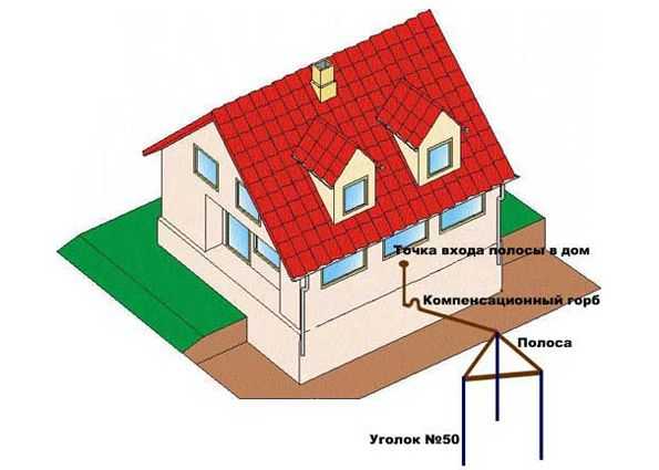 Заземляющее устройство для частного дома предусматривает в схеме следующие детали: