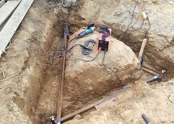 Если вы подобрали нужные материалы, в вашем распоряжении есть лопата, сварочный аппарат, кувалда и ножовка по металлу, то можно начинать работу. Весь процесс изготовления контура можно свести к следующим основным операциям:
