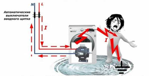 Для устранения подобной ситуации достаточно соединить корпус прибора с землей, и даже неисправная стиральная или посудомоечная машина не будет представлять никакой угрозы человеку. При неполном пробое напряжение с кожуха будет просто стекать в землю по специальной шине, полный же пробой изоляции вызовет короткое замыкание и срабатывание защитного оборудования — предохранителя в приборе, автомата на лестничной площадке или в домовом щите.