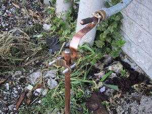 Если в вашем распоряжении есть пара старых, но крепких бочек, задний мост от КАМАЗа или нечто подобное, то вариант вполне осуществим. Привариваете металлическую шину к предмету, сам предмет вкапываете, а шину выводите на поверхность. Но, простой с виду, этот способ имеет массу недостатков: