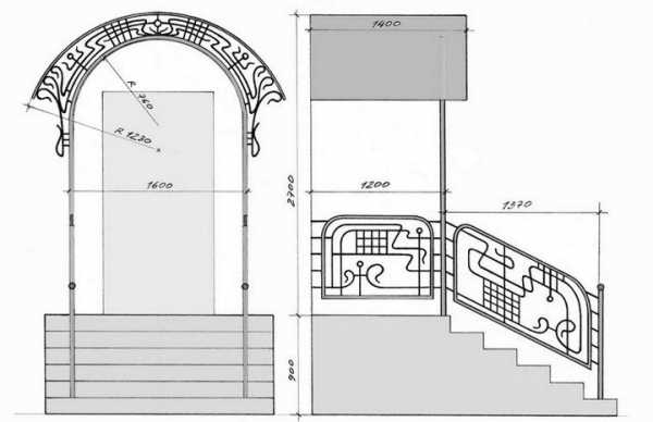 Выбрав оптимальную форму и расположение, продумайте конструкцию каркаса и сделайте точный чертеж крыльца из металла со всеми размерами.
