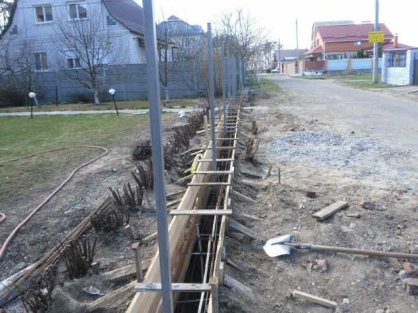 Армирование траншеи происходит вместе с устройством опалубки, которая уже должна быть собрана в цельный каркас. Далее в основание заливается бетонный раствор, постепенно, слоями по 20 см., каждый такой слой тщательно утрамбовывается.