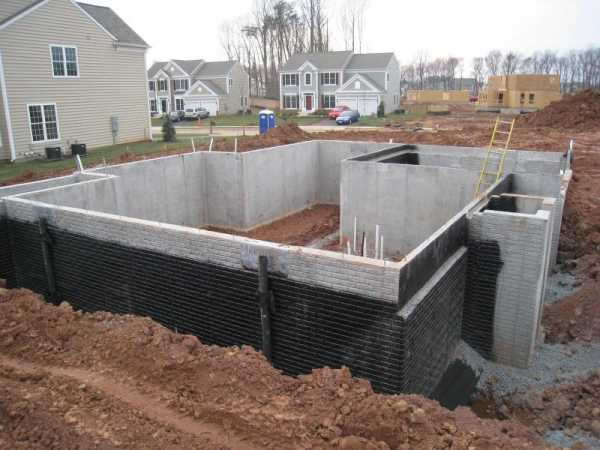 фото фундамента с цокольным этажом • земляные работы и гидроизоляция.
