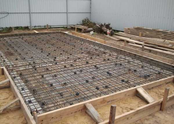 Собираем опалубку нашей плиты из фанеры или досок, внутрь плиты укладываем арматуру диаметром не меньше 10 мм. Ложится арматура решеткой с окнами от 20 до 35 см, и связывается проволокой с помощью крючка.