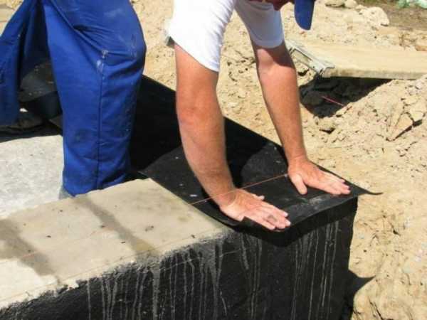 Чаще всего используют рулонную гидроизоляцию на основе битума, а еще лучше с добавлением полимеров. К вертикальным плоскостям ее крепят с помощью клея, мастики или нагреванием газовой горелкой.