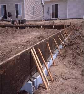 1. Первым делом сооружается ленточный фундамент шириной 40 см и глубиной от 40 до 70 см, в зависимости от типа грунта и климатических условий данной местности.