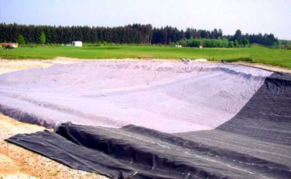 2. Настил геотекстильного полотна по дну и периметру стен выкопанного котлована.
