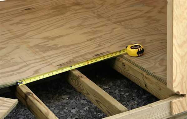 Сверху на лаги нашивается фанера толщиной 16 мм или половая рейка.
