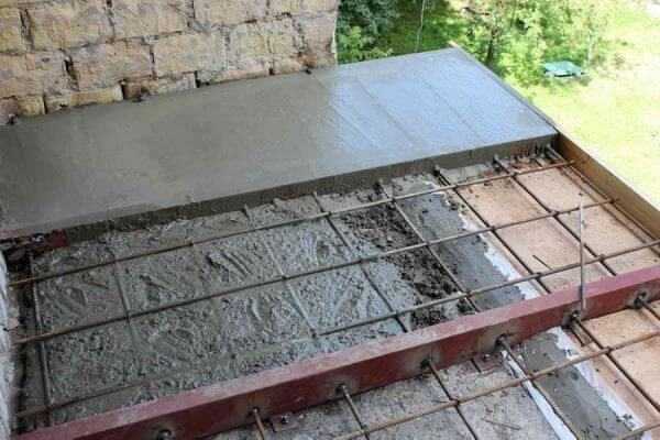 9. Производится заливка плиты. Процесс осуществляется равномерно по всей площади. Уровень выравнивается по внешней стороне опалубки, но с условием, что расстояние до верхнего ряда арматуры должно быть не менее 5 см.