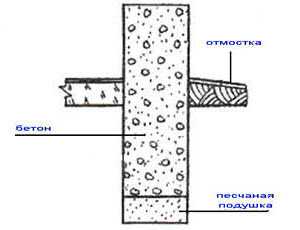 Лучше всего использовать бетон, приготовленный на основе цемента марки 300-400. В качестве заполнителя рекомендуется использовать гранитный щебень или чистый крупный песок. Состав бетона должен быть следующий: 1 ч. цемента, 3 ч. песка и 3-4 ч. щебня. Воды при этом должно быть столько, чтобы бетон оставался пластичным, и можно было уложить его в опалубку (а не залить).