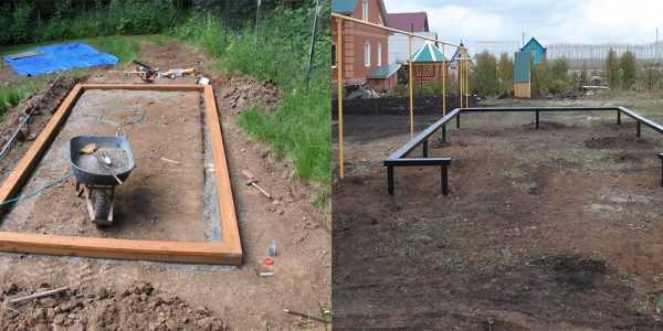 По периметру будущего здания выройте траншею нужной глубины, дно выровняйте с помощью пескаМонтаж опалубки для фундамента
