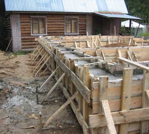 - При обустройстве этого фундамента возможно использование бетонной смеси, приготовленной самостоятельно прямо на площадке строительства.