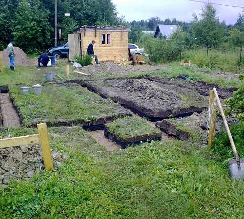 - Затем роются траншеи глубиной 40 см. Ширину траншеи определяют, исходя из расчетных значений площади подошвы ленты.
