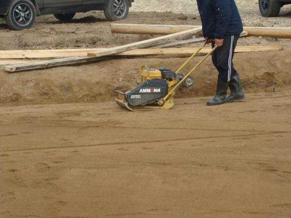 - Песок увлажняется и утрамбовывается.
