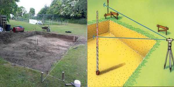 Закончив плоскостную разметку можно приступать к другим этапам работ по строительству плавающего фундамента для бани.