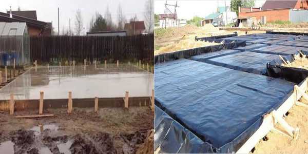 Для равномерной просушки фундамент сверху покрывают опилками, мешковиной, подойдёт даже плёнка ПВХ. Раз в сути конструкцию раскутывают и опять поливают водой. Так, она должна простоять под изоляцией трое суток. Затем фундамент под баню раскрывают, дают окончательно просохнуть, устояться. Минимальный срок высыхания 2–3 суток. После его можно накрыть гидроизоляцией, например, рубероидом в два слоя.