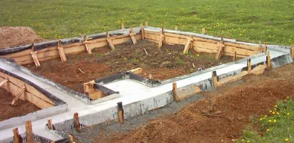 Завершающий этап изготовления фундамента производится после основного отвердения бетона, т.е. через 21-22 суток после заливки. Только после такой длительной выдержки разрешается демонтаж опалубки. Затем обязательно проводится наложение гидроизоляции на боковые стенки. Как правило, защита осуществляется путем нанесения готовой битумной мастики или расплавленного битума. Дополнительно рекомендуется наложить рубероид. После этого оставшийся зазор заполняется землей и тщательно уплотняется. Сверху на фундамент также накладывается гидроизоляция из рубероида.