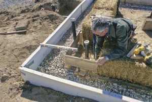 Появившееся сбоку пространство засыпают смесью гравия и песка. В результате полностью исключается вспучивание грунта по внешнему периметру постройки.