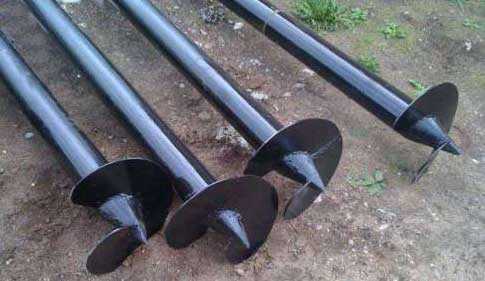 Такой фундамент является относительно недорогой конструкцией и применяется в основном для постройки легких зданий и сооружений. Такие конструкции представляют собой толстотелую металлическую трубу и приваренные к ней в нижней части металлические полоски в виде спирали.