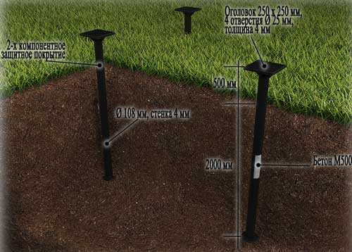 Подсчитать его самостоятельно, по отзывам непрофессиональных строителей, невозможно, поэтому рекомендуется приобретать сваи из трубы диаметром 108 мм. Что касается глубины заложения, то она должна быть в пределах 2-2,5 м. Хотя лучше точно узнать уровень промерзания земли. При этом надо учитывать, что длина сваи для фундамента выбирается с учетом ее выступа над поверхностью грунта.