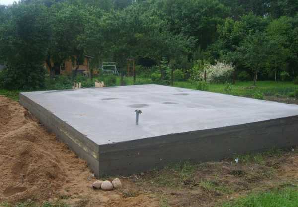 Большим преимуществом в процессе сооружения такой конструкции является то, что нет необходимости использовать специальную строительную технику. Все работы можно провести вручную. Процесс строительства заключается в определении места расположения основания, выемки грунта, обеспечении плотной песчаной подушки, гидроизоляции, установки армокаркаса и самой заливки.