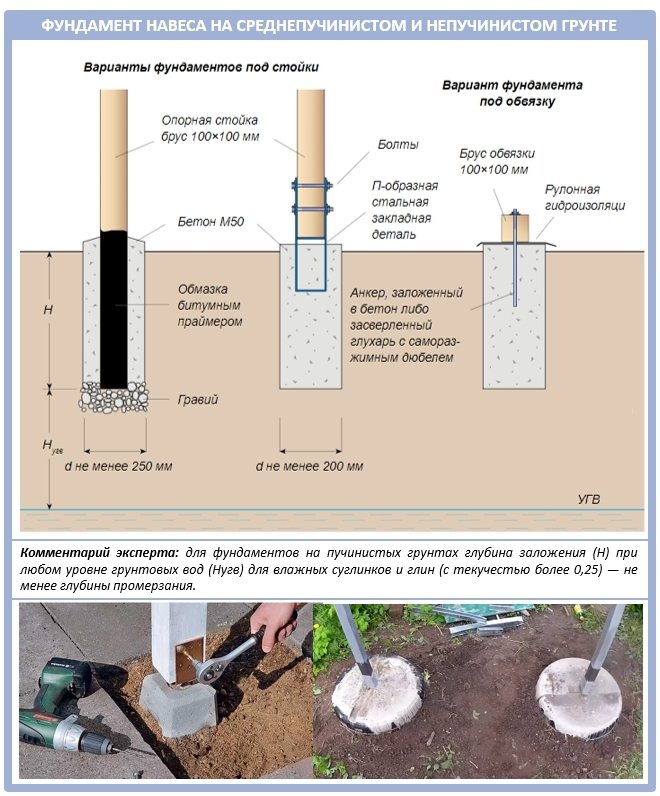 - Опорная конструкция – столбы. Количество столбов зависит от веса строения.