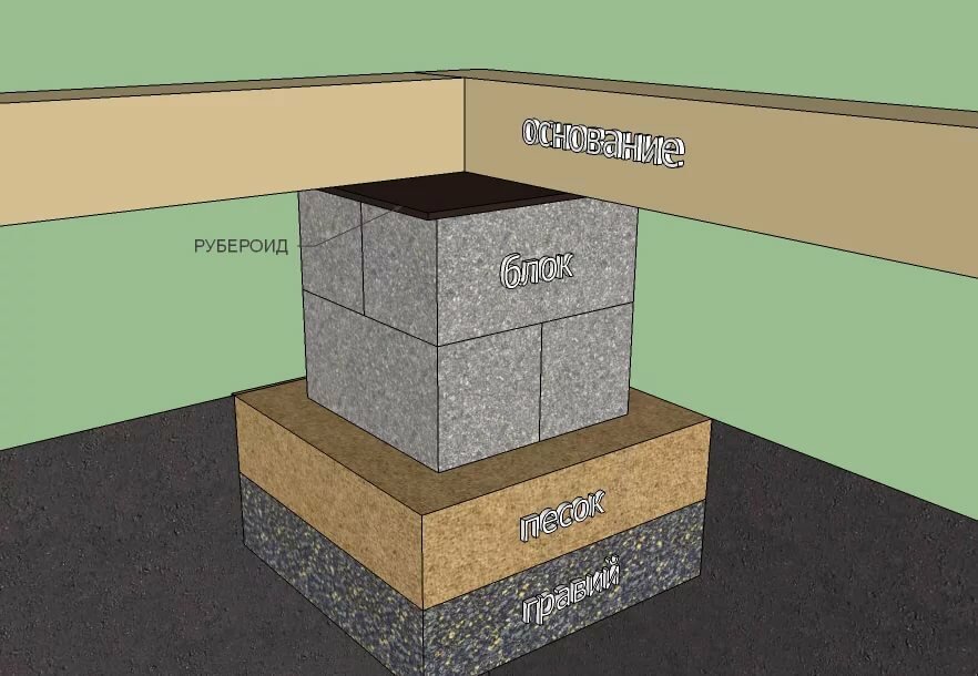 - Установить на отсыпанной из гравия подушке обычные бетонные блоки, лучше фундаментные, но можно и обычные самодельные блоки 200х200х400 мм;