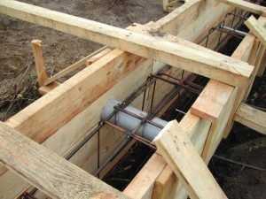 При установке опалубки, следует заранее подготовить отверстия под водопроводные и канализационные трубы, для этого на определенном уровне укладывают асбоцементные или полимерные трубы. После этих работ можно приступать к заливке бетонной смеси.